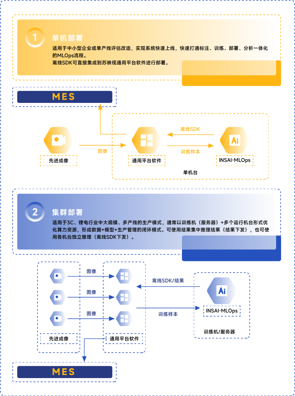 多样化应用 支持定位、识别、分割、3D检测 无需编码 用户友好的界面,操作简便 强大的检测能力 快速训练,高精度,可检测尺寸 ≤ 5x5 像素 便捷部署 标准SDK:一键导出,二次开发接口